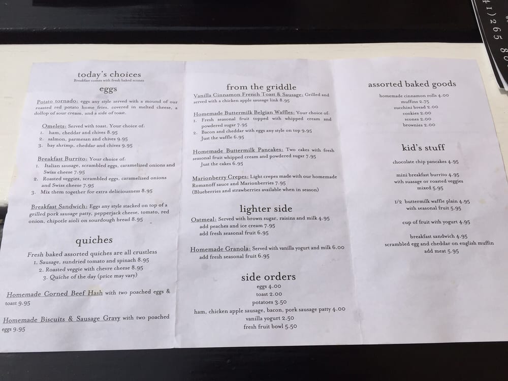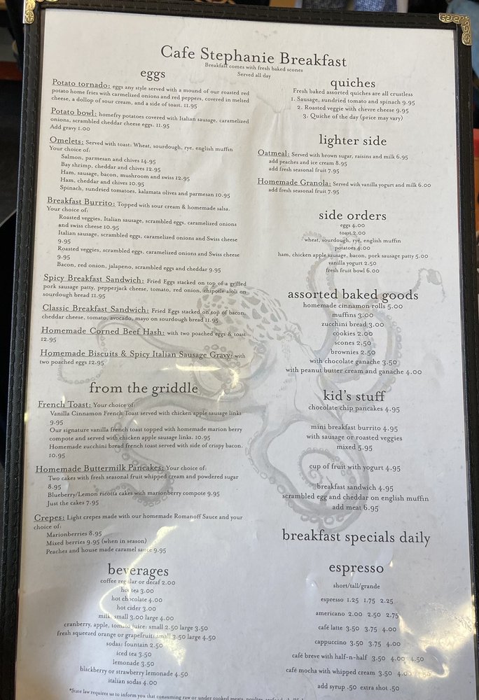 Cafe Stephanie Menu